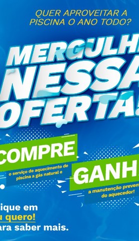 Clientes dos segmentos residencial ou comercial que contratarem o serviço de aquecimento de piscina a gás natural encanado ganharão uma manutenção preventiva gratuita para cada aquecedor contratado!
