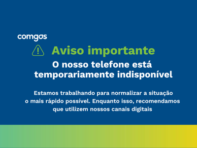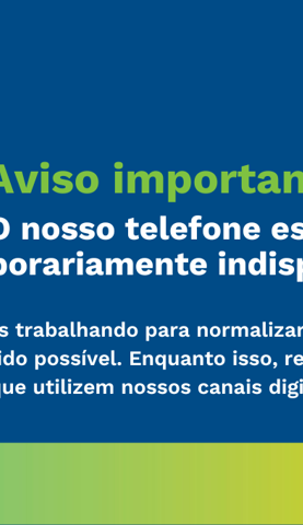 Aviso: estamos com instabilidade em nosso telefone de relacionamento
