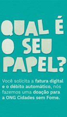 Você faz sua adesão à fatura digital ou ao débito automático e nós fazemos uma doação para a ONG Cidades Sem Fome