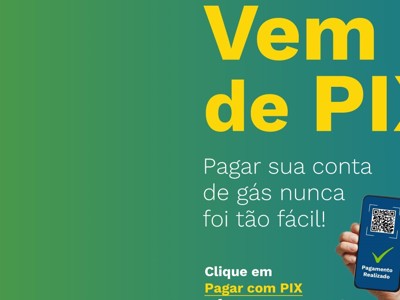 Os pagamentos por PIX são feitos por meio de um QR Code exibido nas contas de gás, que poderá ser usado nos aplicativos de todos os bancos ou carteiras digitais. Para utilizar esse método de pagamento, basta ter uma chave PIX cadastrada, podendo ser seu telefone, CPF e e-mail.